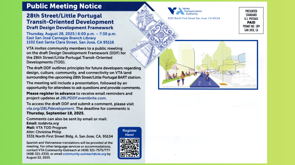 You should have gotten one of the flyers in the mail, but if you didn’t, you can register here: Public Meeting – 28th Street/Little Portugal TOD Tickets, Thu, Aug 28, 2025 at 6:00 PM | Eventbrite