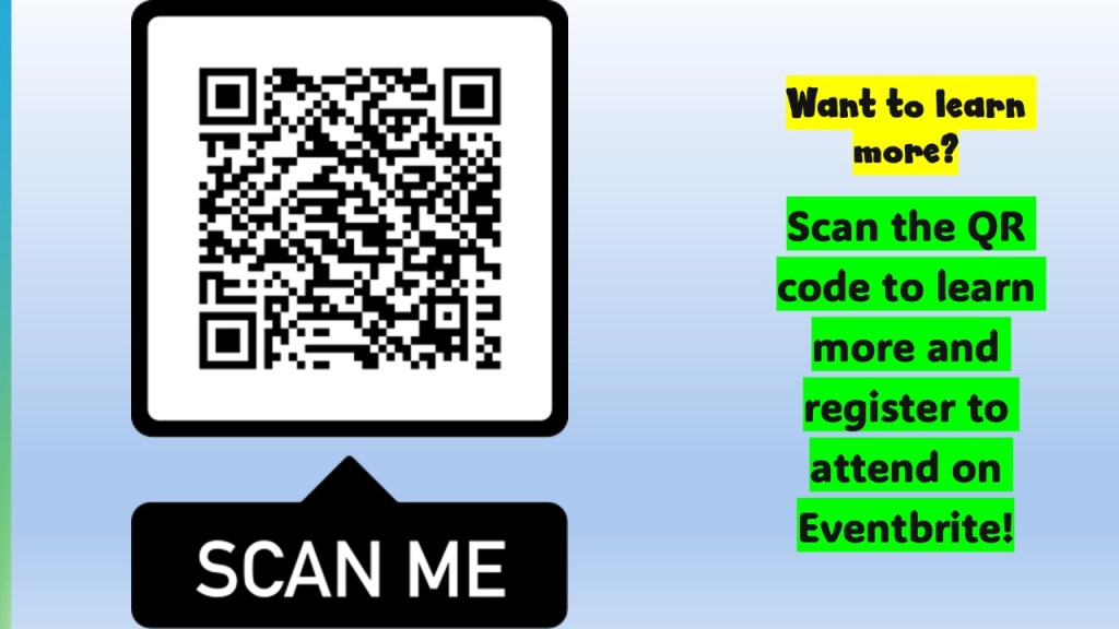 You can find out more at Eventbrite by scanning the QR code.