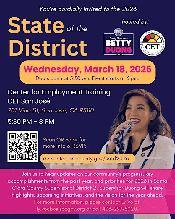 Supervisor Duong will share highlights from the past year, upcoming initiatives, and the vision for 2026, followed by an opportunity to connect with community members and partners.